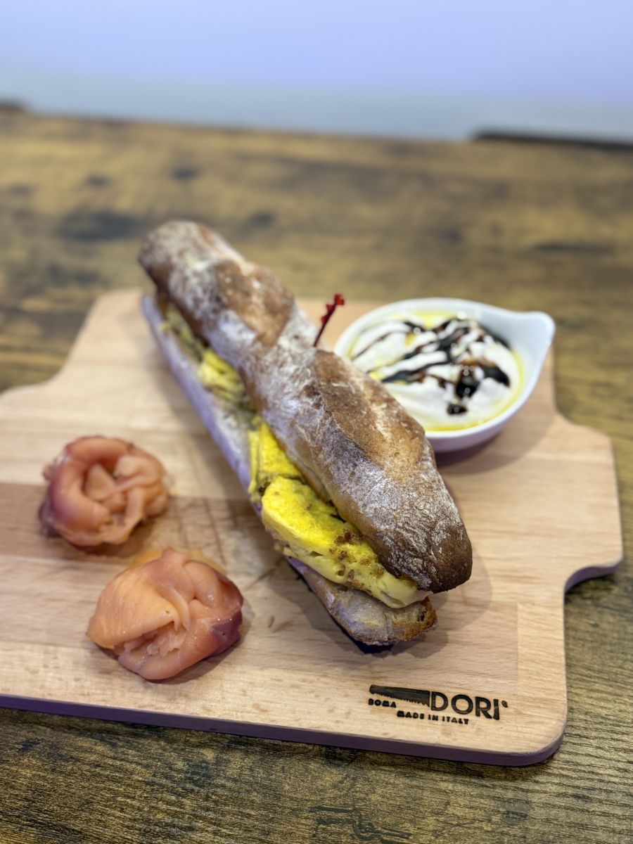 7. Baguette with Egg & Bacon (add Burrata 8, add Salmon 9, add Pancetta 6)