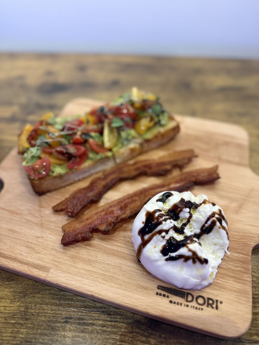 6. Avocado Bruschetta with cherry tomatoes and sesame seeds (add Burrata 8, add Salmon 9, add Pancetta 6)